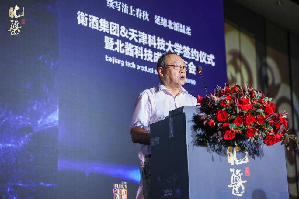 天津市科技局副局长祖延辉在致辞中表示:“衛酒集团是天津本地优秀的传统酿酒企业,其传统酿造技艺已被列入天津市非物质文化遗产名录,也荣获了津门老字号、国家地理标志保护产品等称号。在发展中,也一直为魅力宁河增添时代活力、文化张力和发展潜力。”