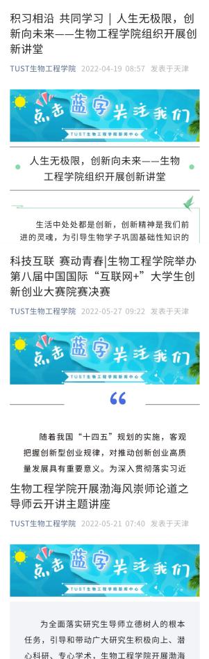 全体教师以炬光之力,以“班导师制”“全员导师制”为依托,以线上班会、科研指导、组会和谈心谈话等为开展方式,围绕学生疫情防控、身心健康和科研学习,排忧解难护成长,禁漫天堂app也组织开展“鹤鸣书院荐书及读后感分享活动”、“人生无极限,创新向未来——创新讲堂”、“第八届中国国际“互联网+”创新创业大赛培训会及院赛”、“渤海风崇师论道之导师云开讲主题讲座”、“思而敏行之硕博学术创新云论坛”、“第七届微世界艺术大赛”等活动,引领青年一代以书为师亦为友,以学为尚亦为荣,培养学生多元能力,引领学子全面发展。