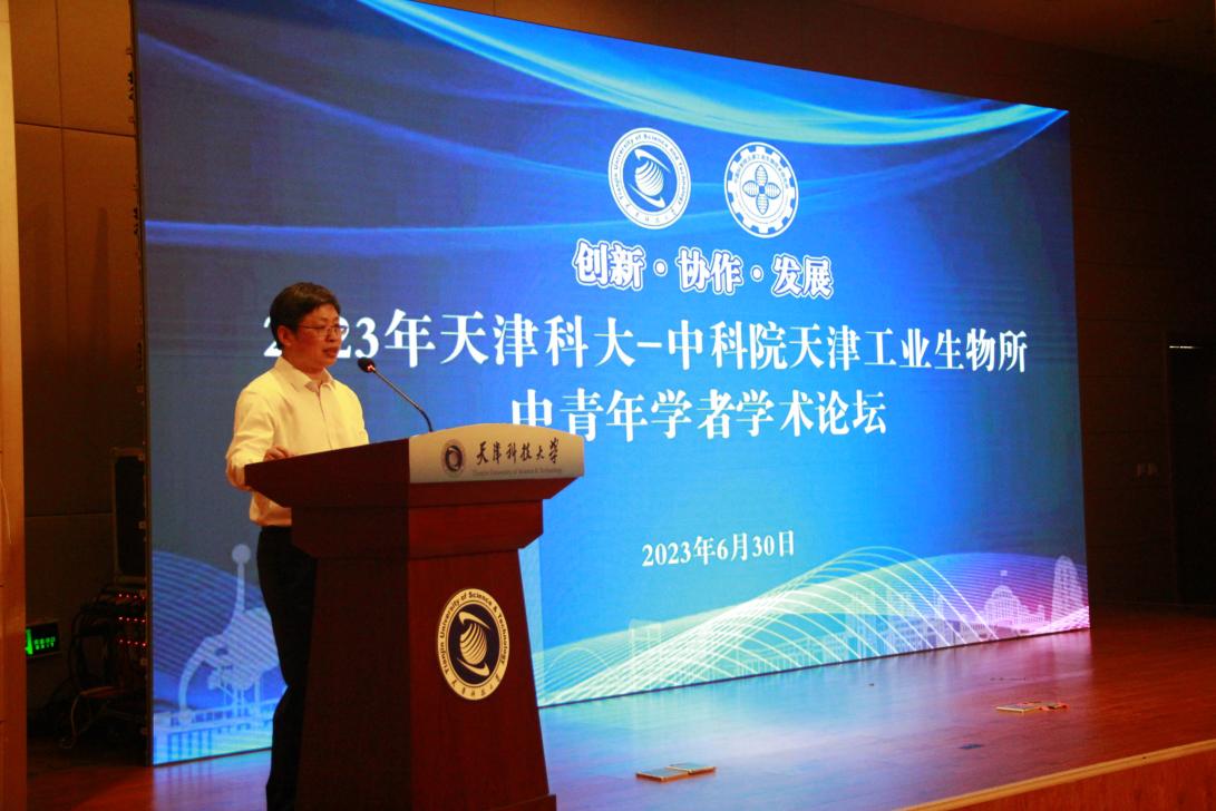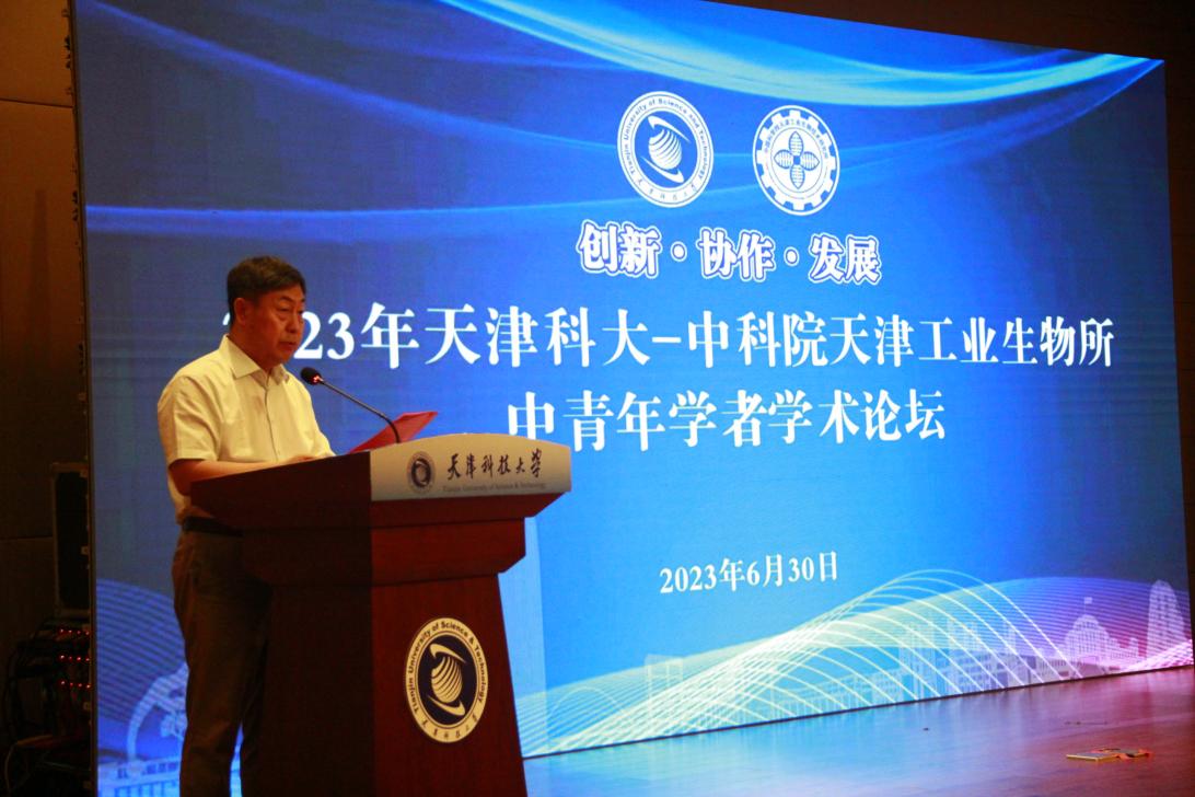 高发明同志代表我校向参加论坛的嘉宾和青年学者们表示热烈欢迎。他指出,天津科大与中科院天津工业生物所签署全面战略合作协议以来,在人才培养、科技攻关、学术研究等方面的合作进一步深化。学校注重发挥特色学科优势,不断加强与工生所的交流,搭建校所合作平台,此次论坛的召开将进一步促进校所科技合作,希望与会专家学者能够在这里进行深入交流,收获知识、结交朋友、提升能力,共同推动学术研究的发展。