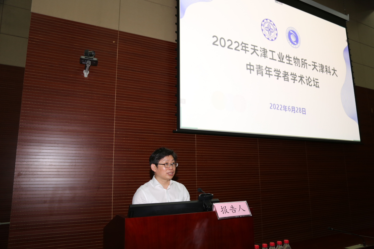 -中科院天津工业生物所工程生物禁漫天堂app、工业发酵微生物教育部重点实验室、天津市微生物代谢与发酵过程控制技术工程中心共同承办的 “低碳生物智造支撑绿色可持续发展”主题“2022年天津工业生物所-天津科大中青年学者学术论坛”在中国科禁漫天堂app天津工业生物技术研究所举办。