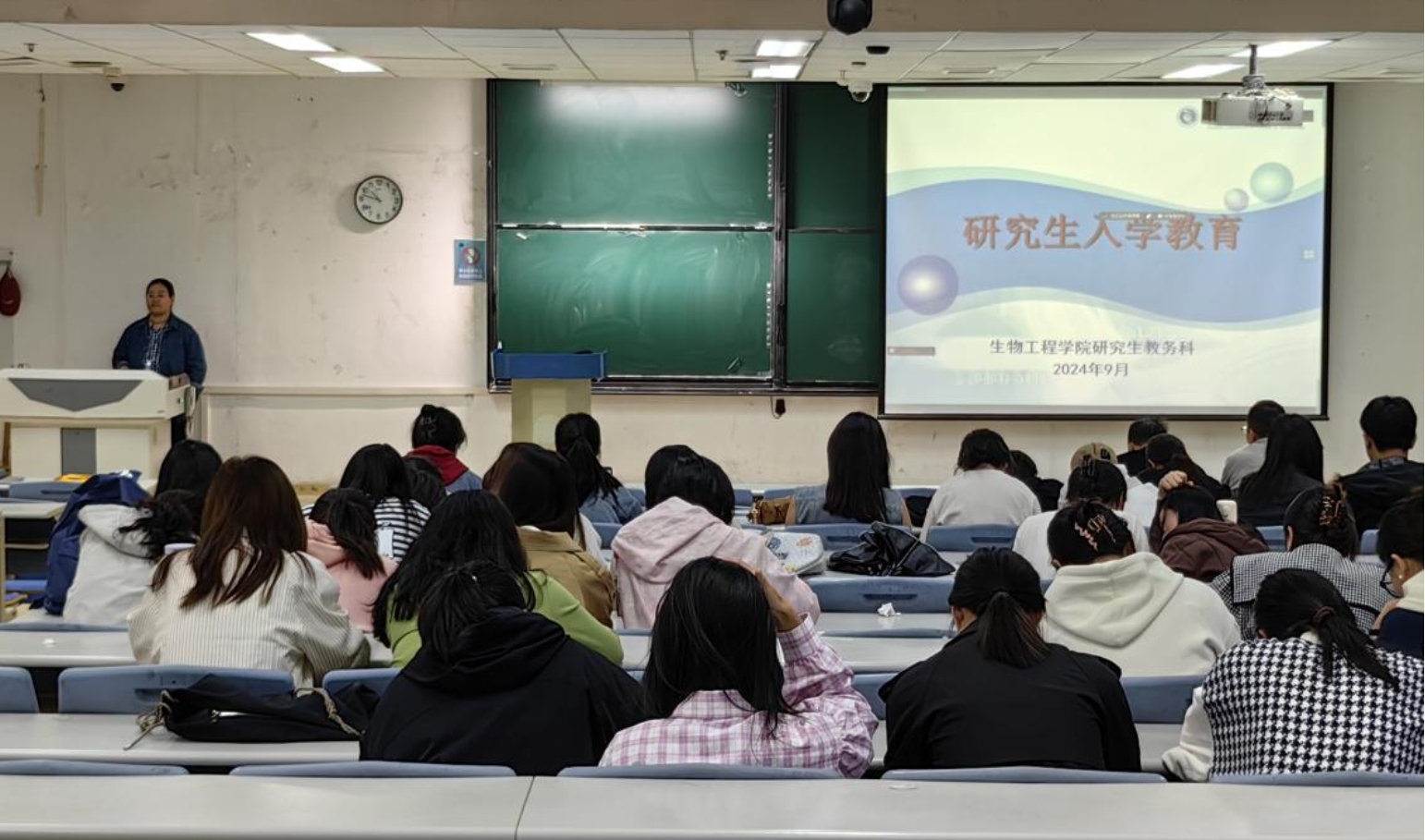 2024级辅导员周丽媛、袁林重点强调了研究生日常管理制度、实验室安全考试、档案管理、党团关系、假期安全等内容。