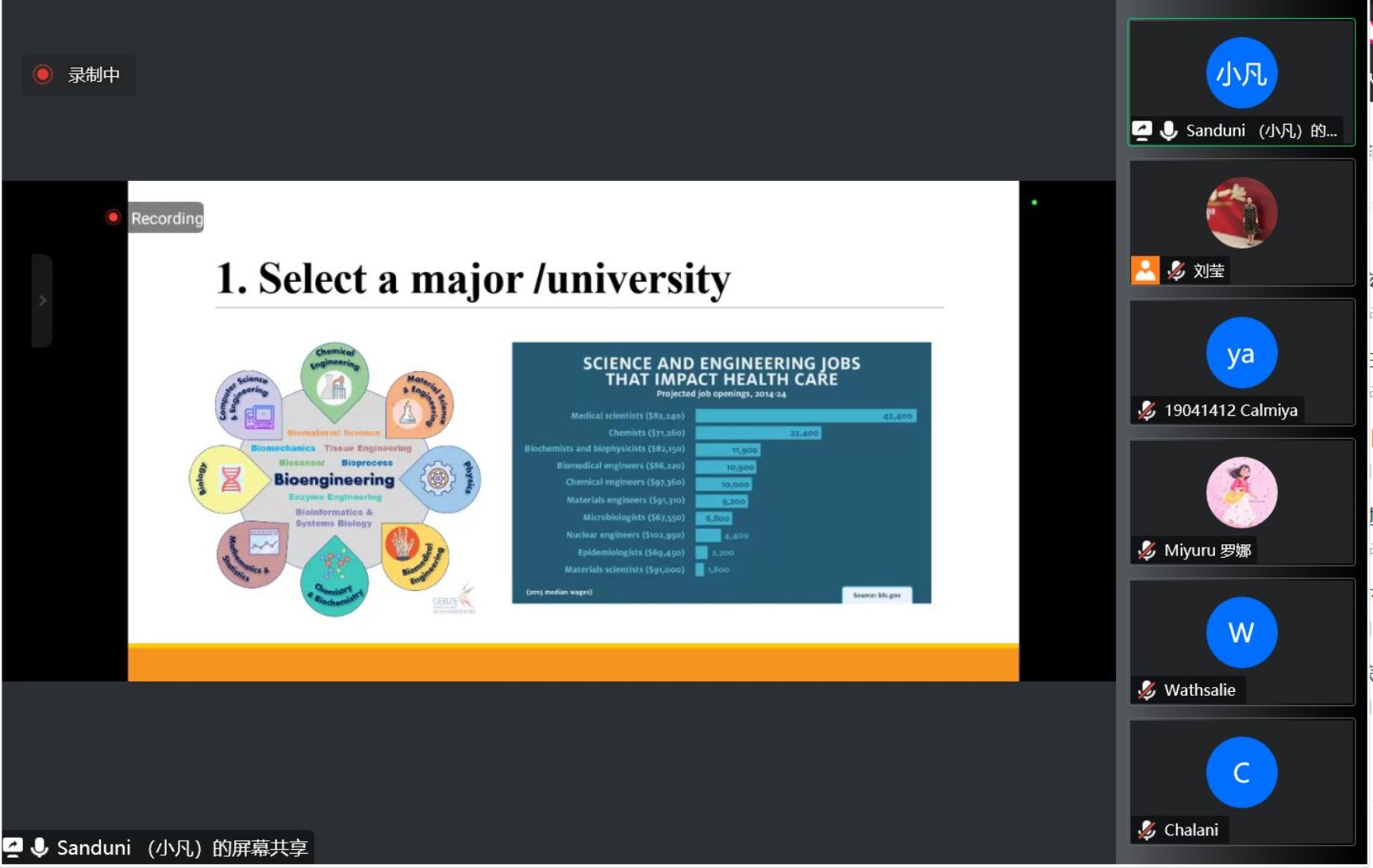 斯里兰卡本科生DE ALWIS SOORIYA ARACHCHIGE SANDUNI SAMUDIKA (中文名:小凡)分享“如何在中国顶尖大学和研究所申请硕士项目”。报告以在线形式开展,禁漫天堂app