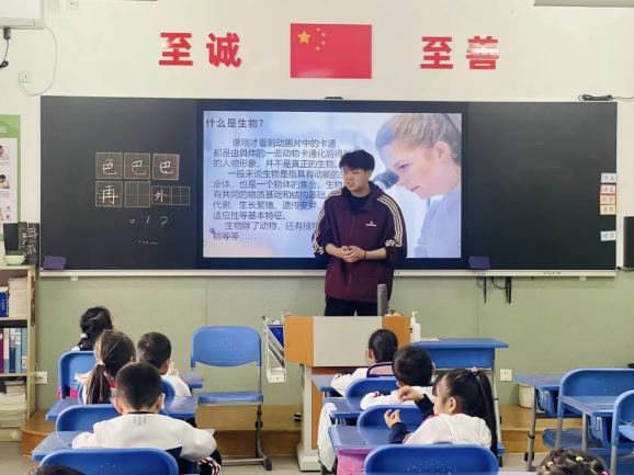 志愿者充分发挥专业知识,通过大中小学校思政一体化建设模式,助力课后服务工作,开展生物知识主题教育实践活动,在小学生的内心种下生物知识的种子,激发了孩子们的好奇心和求知欲,为培养同学们的科学思维和创新精神打下了良好的基础。