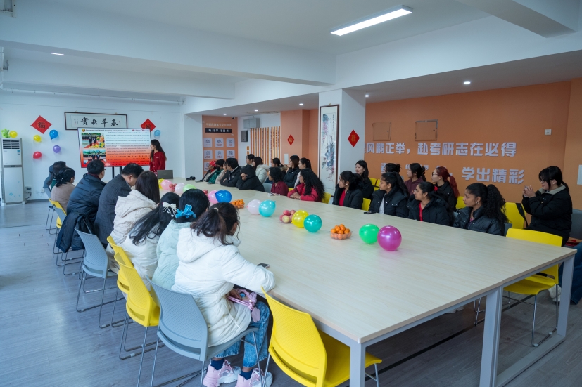 活动开场,主持人以庄重且富有感染力的欢迎词拉开序幕,清晰点明活动旨在搭建文化交流的坚实桥梁,促进不同文化间的深度理解与融合,助力留学生们深入了解中国传统文化的精髓。随后,一场精彩纷呈、内容翔实的春节文化讲解精彩呈现,宛如一幅徐徐展开的历史画卷,带领留学生们穿越时空,探寻春节的起源与发展。