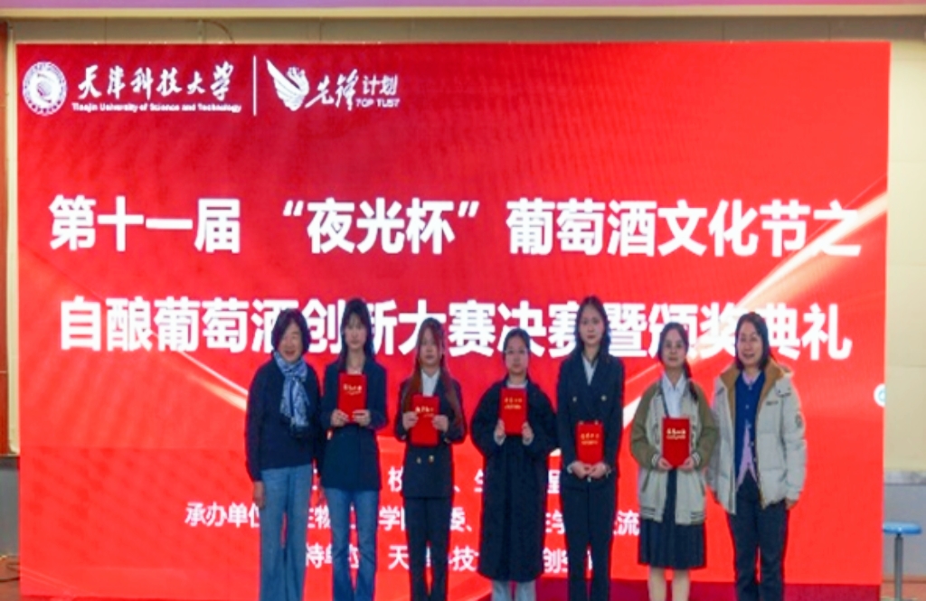 “夜光杯”自酿葡萄酒创新大赛以酒为桥,既串联起专业知识与实践创新的纽带,也让千年酿酒文化在青年学子的巧思中沉淀出新的味道。这场以青春为名的酿艺之约,不仅是一次专业技能的试炼,更藏着传统文化薪火相传的温暖注脚,每一杯佳酿中,都体现出了天科学子精湛的酿酒技艺、新颖的创意实践和昂扬向上的青春风采。