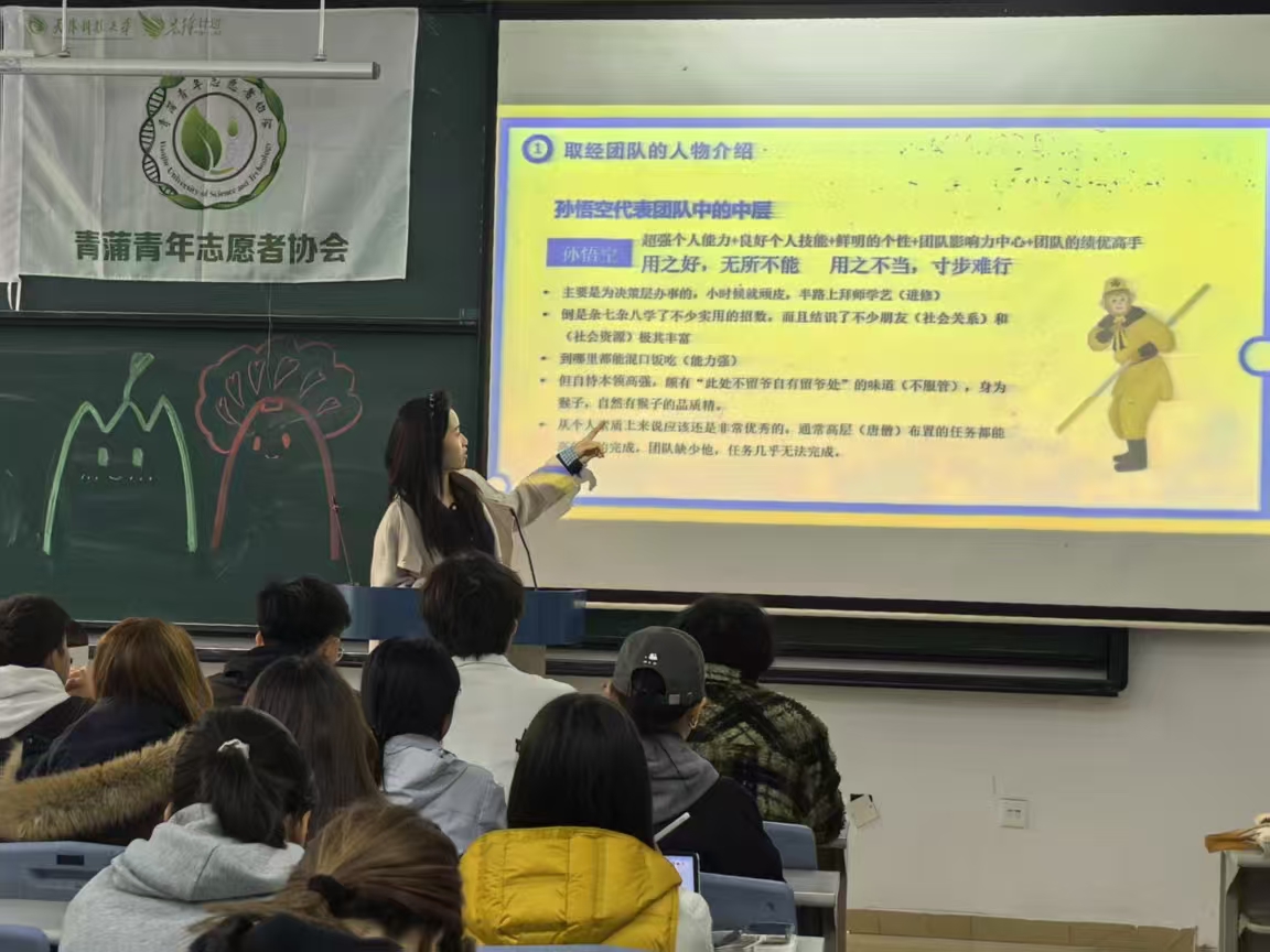 训练营第一阶段,青蒲青年志愿者协会主席李佳运围绕“西游记之团队管理”展开讲解。她首先介绍了取经团队中各人物的角色特点,生动阐释了团队组建的必要性,并结合现代管理理念,分析了如何有效管理团队成员、构建高效团队的关键要素。李佳运以“古典故事+现实工作”的融合方式,引导大家思考自身在团队中的角色定位,学会凝聚集体智慧、形成协作合力。