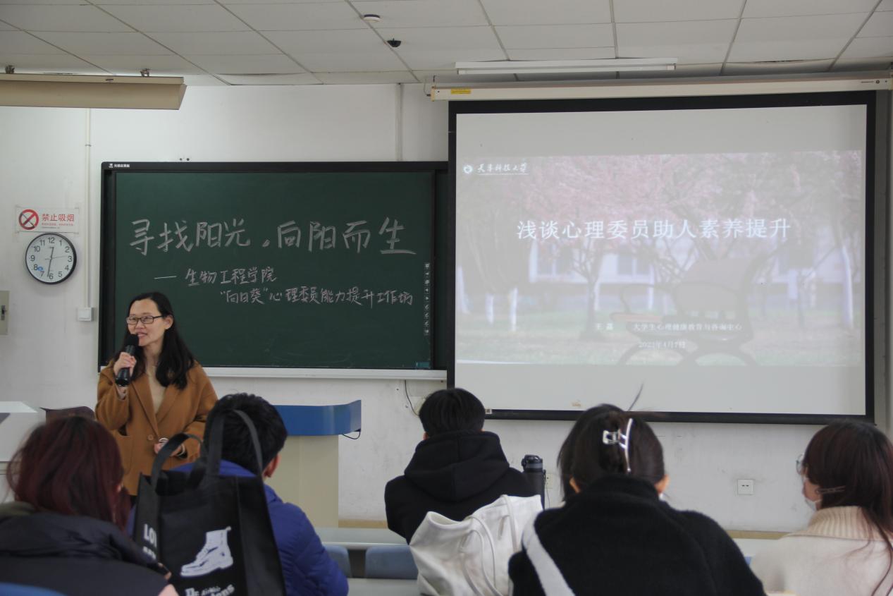 于滨海中校区3号楼209教室举行了以“浅谈心理委员的助人素养提升”为主题的心理委员能力提升培训讲座,学校大学生心理健康教育与咨询中心王荔老师受邀主讲,禁漫天堂app