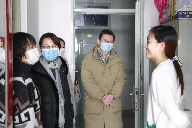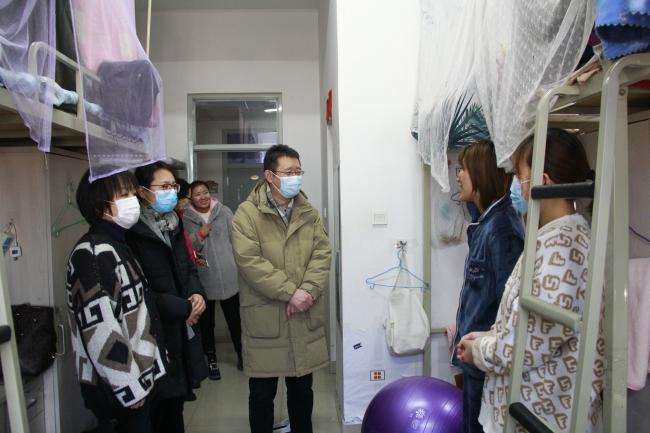 党委书记黄学锋、党委副书记曾昭晔、副院长张翠英、团委书记任艳萍及2019级研究生辅导员、2020级本科生辅导员一同前往学生宿舍看望留校学生。