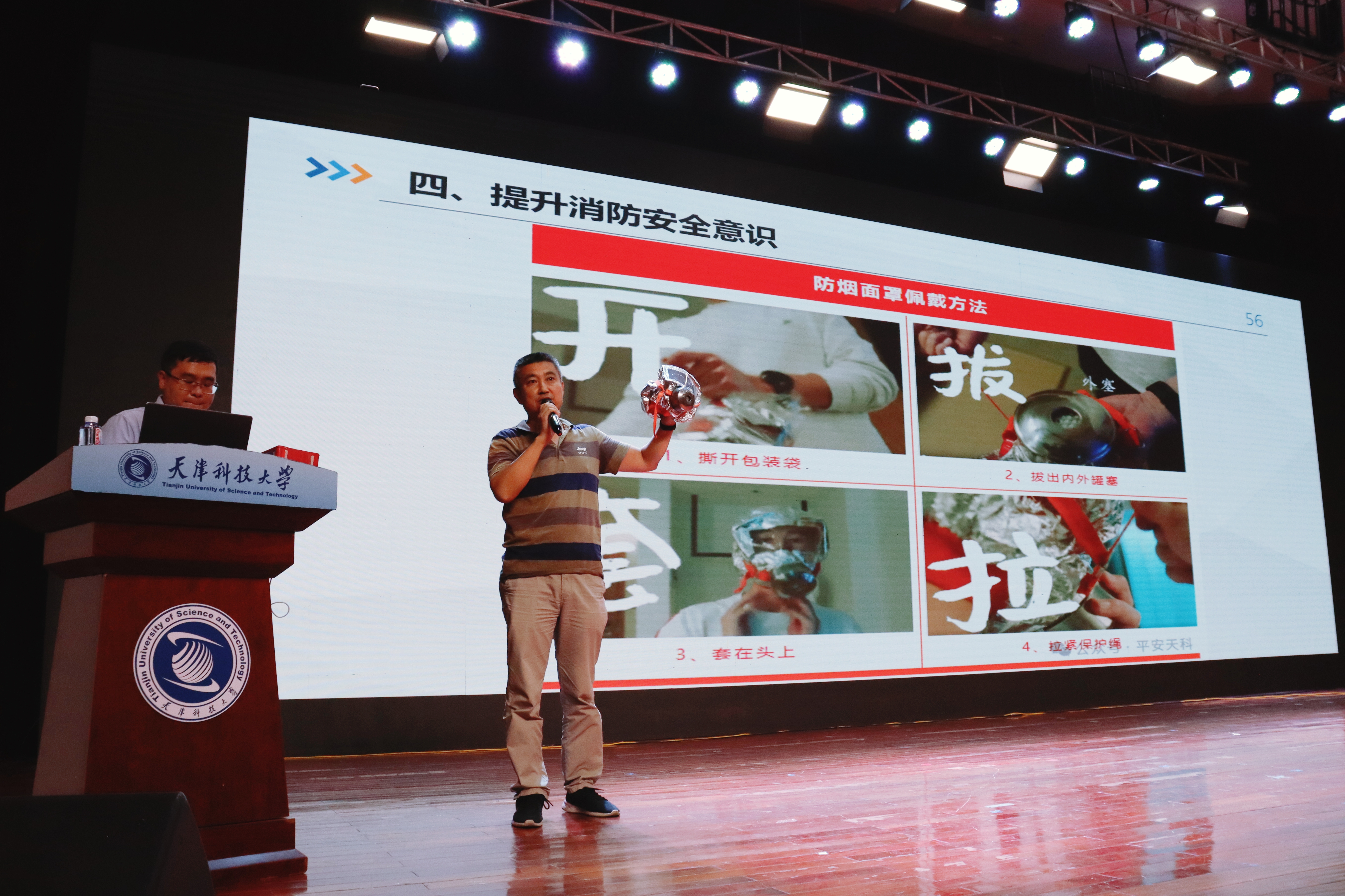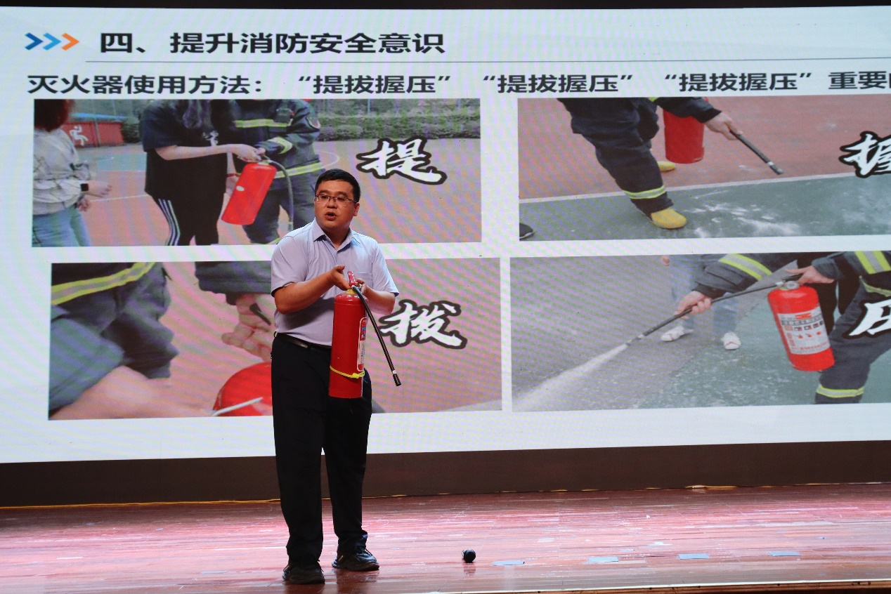 禁漫天堂app邀请了保卫处王悦科长带来一场生动详实的消防安全教育讲座。他结合高校实验室火灾案例,深入剖析火灾发生的原因及危害,详细讲解了灭火器、消防栓等消防设施的使用方法以及火灾预防措施。保卫处孙家平老师现场示范了“过滤式消防自救呼吸器”和灭火毯的使用方法。两位老师通过现场演示与互动问答,强化了同学们的安全意识,直观掌握火灾逃生技巧,有效提升了大家应对突发火情的能力。