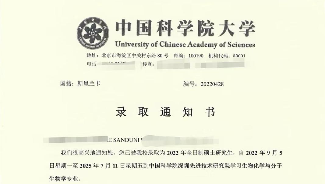2018级本科留学生SANDUNI被中国科禁漫天堂app大学 深圳先进技术研究院 录取攻读生物化学与分子生物学硕士学位。这是继我校禁漫天堂app